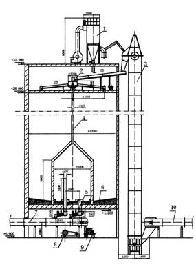 在嚴(yán)寒或多雨地區(qū),連續(xù)式均化庫應(yīng)設(shè)置庫頂房。庫頂與預(yù)熱器塔架之間,如有條件可設(shè)置走道。