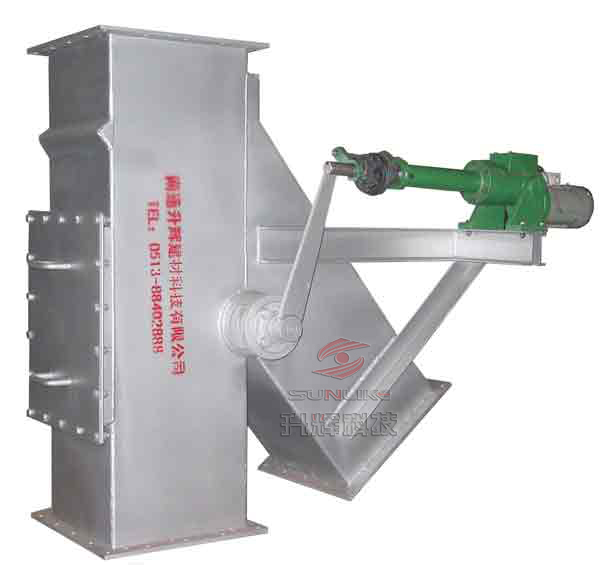 三通分料閥又叫三通溜子,主要由閥體,閥軸、閥板、曲柄機構(gòu)、電動推桿(電液動推桿、氣動推桿或手動機構(gòu)等)組成。工作時,電液動、氣動推桿直線往復(fù)運動,(手動由外力)通過曲柄帶動閥軸、閥板做一定角度的擺動,從而達(dá)到控制物料流量方向,分送物料的目的。廣泛應(yīng)用于建材、冶金、礦山、輕工、糧食等行業(yè)固體顆粒和粉狀物料輸送。
