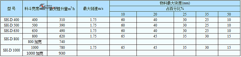 SH-D為單排單鏈,提升量自310立方米/小時(shí)-780立方米/小時(shí)。